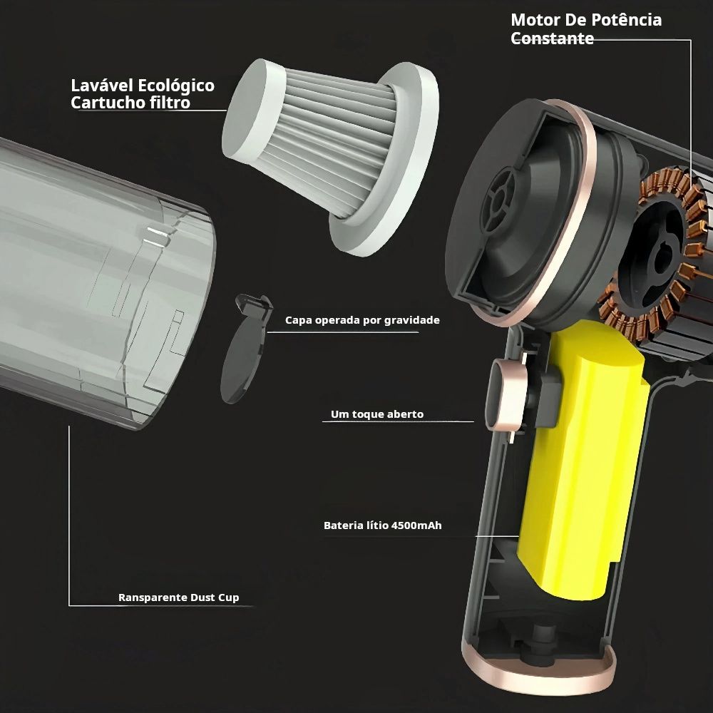 Design compacto, sucção potente, conveniente e prático para vários cenários.